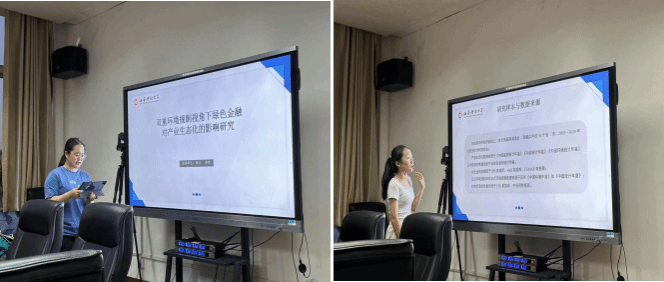 2024-2025学年第1期学术沙龙活动在吴梦琪同学的主持下如期举行,本次沙龙的主题是“双重环境规制视角下绿色金融对产业生态化的影响研究”,由2023级金融学硕的高凡同学和李雯同学为大家作汇报讲解,本次沙龙有幸邀请到亢一鸣老师和马文婷老师作为讲评嘉宾,参加本次沙龙的是来自麻将小游戏