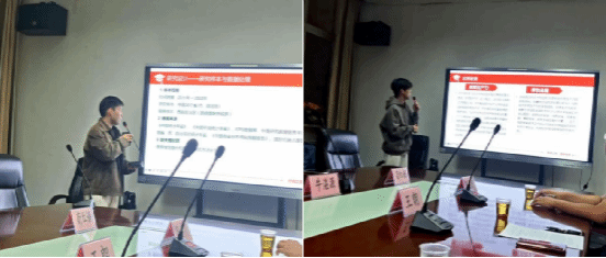在本次学术沙龙中,两位汇报人围绕《绿色金融与新质生产力:促进还是抑制?——基于技术创新与环境关注度的视角》展开汇报。荀红语同学首先介绍了研究背景、理论框架与研究假设。她指出,新质生产力以科技创新为核心,融合绿色、数字等新要素;绿色金融将环境因素纳入投融资决策,是推动新质生产力发展的重要抓手。在国家多次强调绿色发展和金融“五篇大文章”的政策背景下,探讨两者关系具有重要现实意义。理论与假设部分提出,绿色金融可通过“促进技术创新”和“提升政府及公众环境关注度”两条路径带动新质生产力发展,并据此提出三项假设:H1绿色金融能够促进新质生产力发展;H2绿色金融通过提升技术创新的数量与质量发挥作用;H3绿色金融通过提高环境关注度发挥作用。