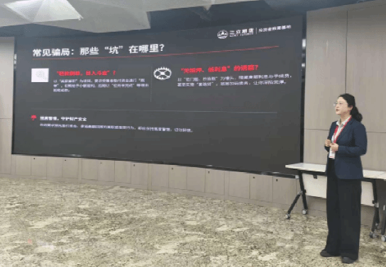 随后,三立期货公司的投资者教育基地的讲解员耐心讲解投资中的各类诈骗陷阱,教授各类防骗知识。