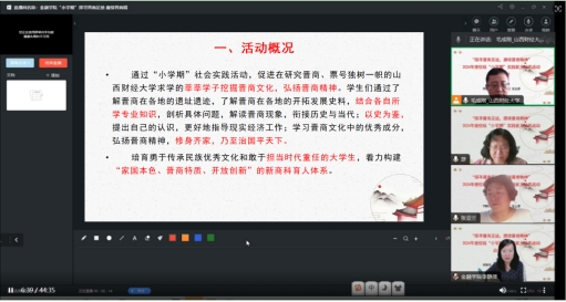 “探寻晋商足迹,赓续晋商精神”“小学期”课程组通过学习通直播课堂和腾讯会议相结合的方式,为数百位同学开展了一次培训。