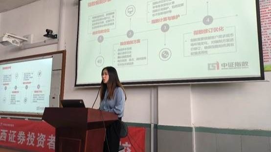 首先,陈怡行女士以“指数化投资:市场实践与发展趋势”为主题,从指数化投资的概念、指数化投资的金融生态及应用、指数化投资的发展趋势和相关数据获取渠道四个部分进行了学术演讲。第一,她介绍了指数的定义是反映各种证券价格的总体水平变化(涨跌幅)的指标,指数涵盖资产范围广泛,金融领域指数具有表征功能、业绩评价基准、投资产品跟踪标的三大功能,以及指数编制步骤,指数加权方法和指数的分类。她还列举了综合与规模指数、行业主题指数、策略指数和固定收益指数的例子。第二,她阐述了指数化投资产品生态圈,包括指数基金、股指期货、股指期权、ETF期权和挂钩指数的结构性产品。在介绍了指数化投资的优势后,引出指数在境外市场和场内衍生品市场工具体系的应用。第三,她展望了指数化投资的发展趋势:ETF更具优势,渐成主流产品形态;宽基指数市场关注度高,发展潜力大;策略指数渐普及,红利指数当先锋;境内行业及主题类产品占比不断提升;ESG等可持续发展产品备受关注;固定收益指数发展加速等。第四,她提供了数据获取渠道——中证指数有限公司以及查询指数相关信息的渠道——指数机构官网、授权资讯商等。