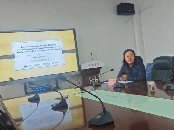 副教授卢青,为我院师生进行了一场主题为“有限理性、有限可靠性与国际合资企业的终止”的专题讲座。讲座以国际合资企业意外终止现象为切入点,通过巴克莱卡斯泰利尼银行合资案例,展示了合资企业从计划终止到意外终止的转变过程,以及关键决策者的有限理性和有限可靠性如何影响合资企业的命运。